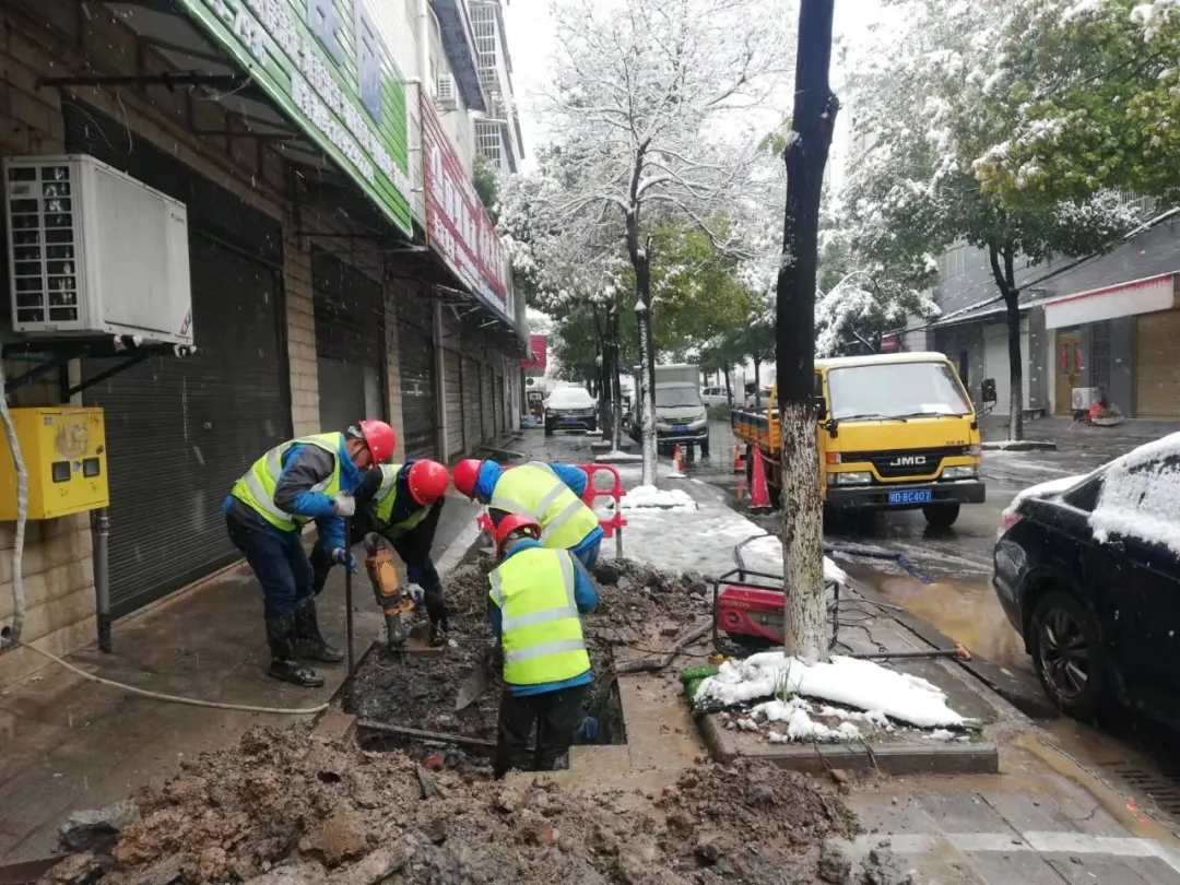 为保障居民的正常生活用水,在御河一路,管网部抢修员们冒着风雪带水作业,他们满身泥泞,双手泡在冰水中冻得通红。冻得发麻了,就哈口气,搓搓手暖和一下,再继续干。皑皑白雪中,他们顾不得身上的积雪,任凭脚下泥泞一片......