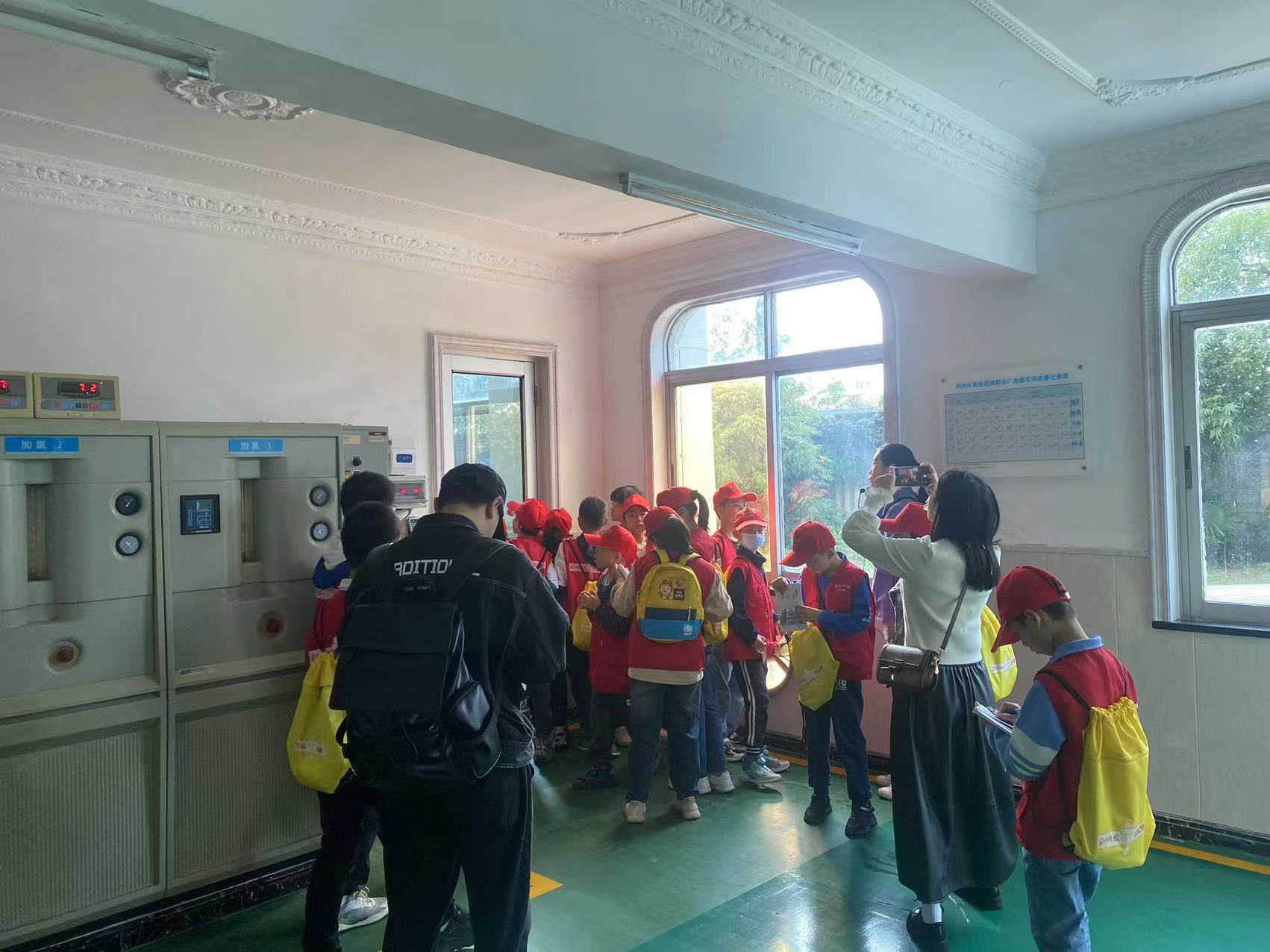 在参观水厂的过程中,讲解员带领大家依次参观了反应池、沉淀池、送水泵房等,耐心细致地为同学们讲解了自来水的源水引入、混凝反应、沉淀、过滤、消毒等制水工艺流程和原理。小记者听得津津有味,还积极提出问题与讲解员进行交流互动,现场学习氛围十分浓厚。