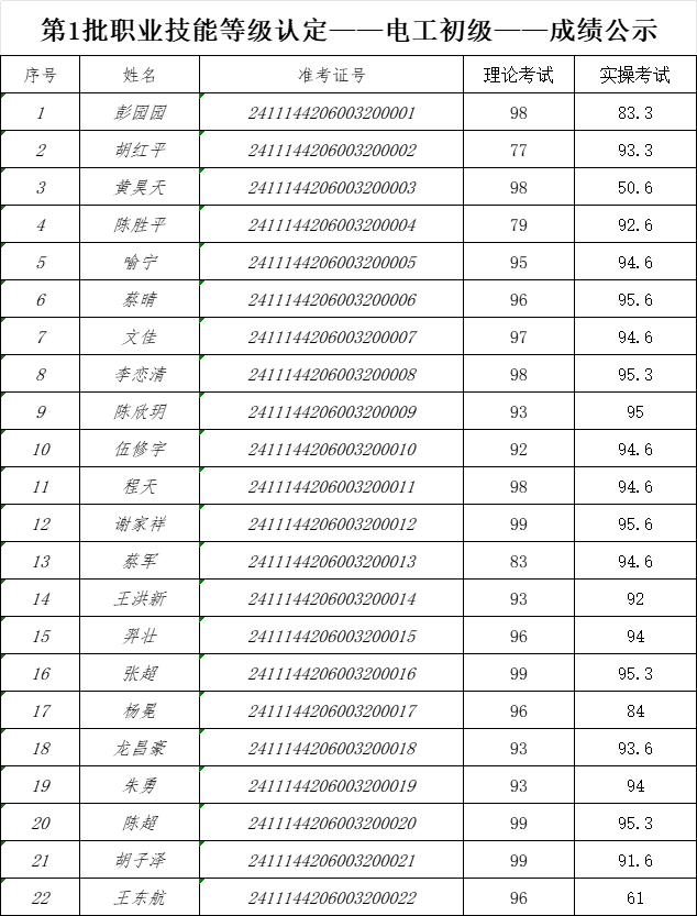 附件:第1批职业技能等级认定——电工初级——成绩公示