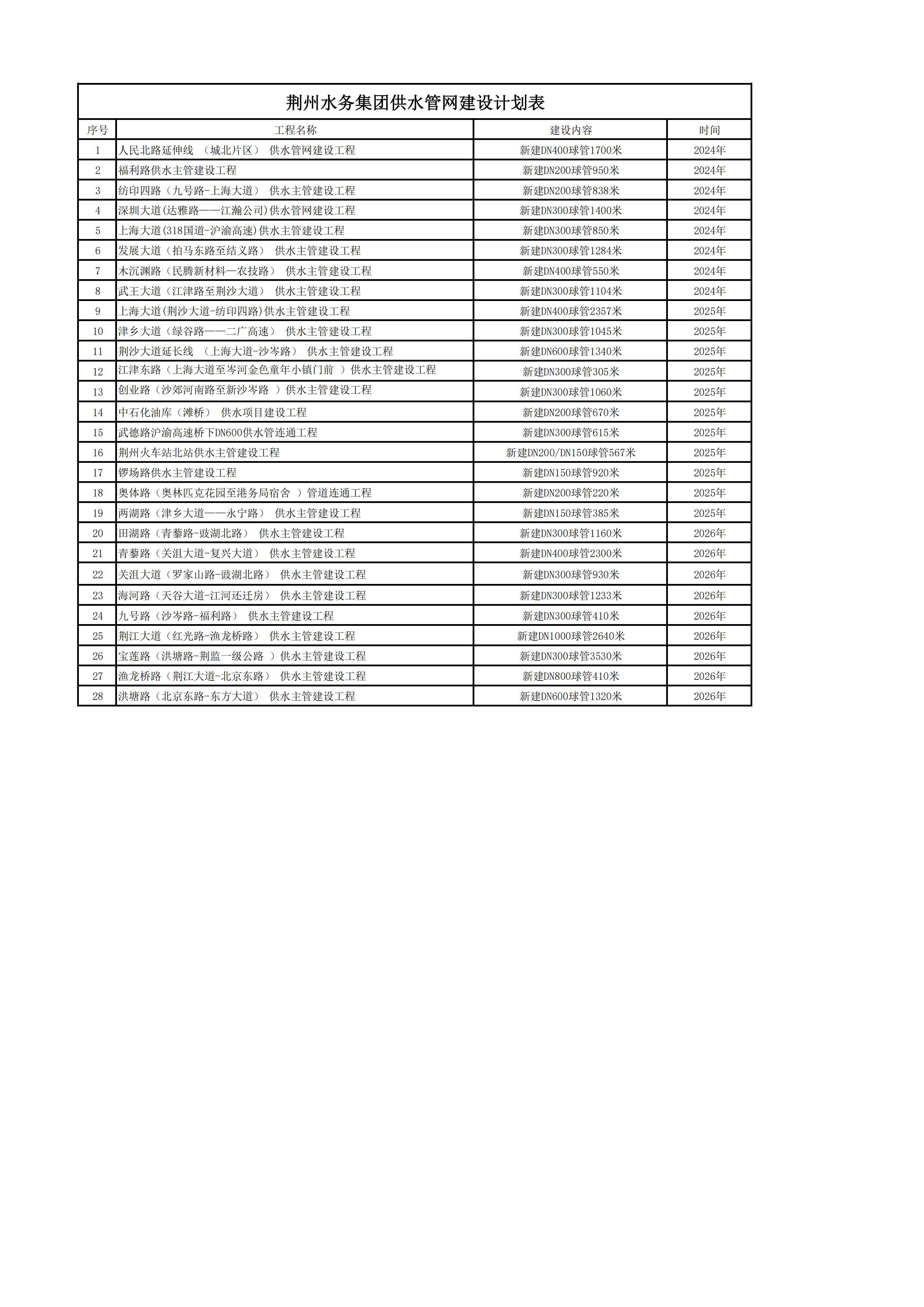 荆州水务集团供水管网建设计划表