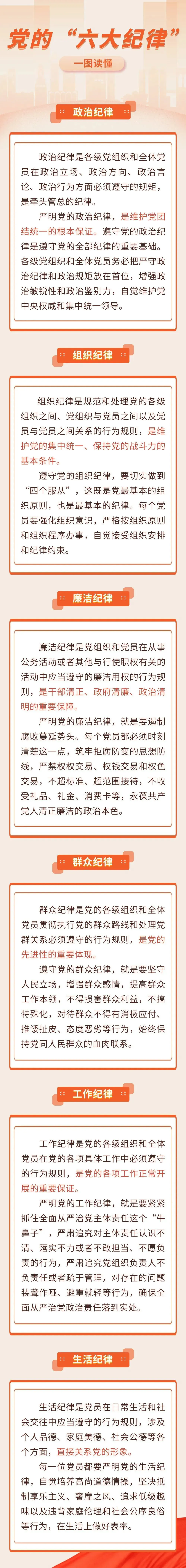 律、组织纪律、廉洁纪律、群众纪律、工作纪律、生活纪律。