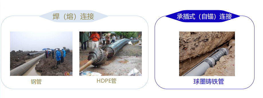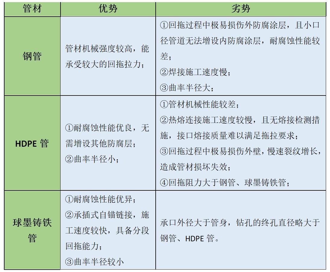 目前,在水平定向钻进施工领域广泛使用的管材主要有钢管、HDPE管、球墨铸铁管等管材。
