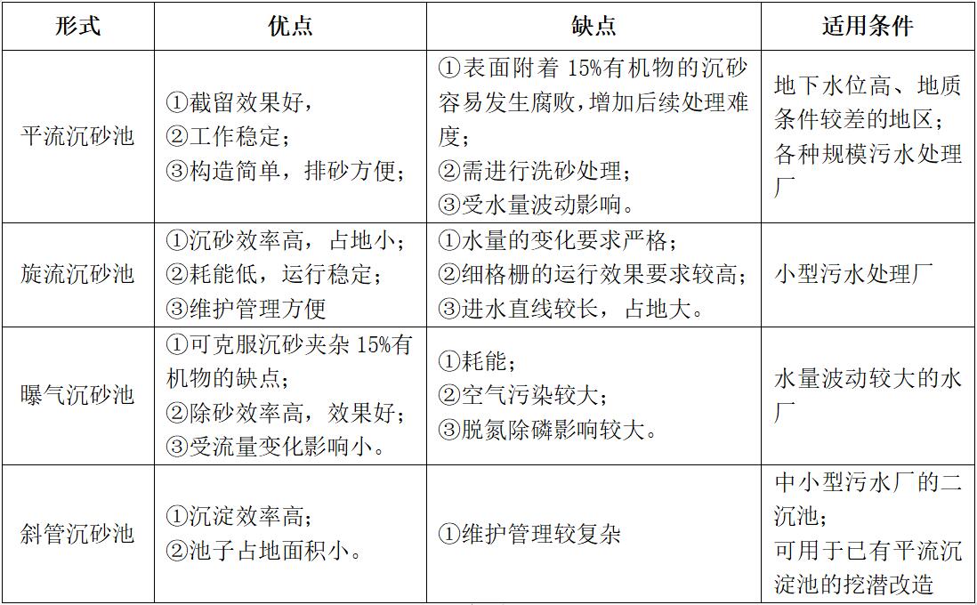 对于给水厂制水规模不大或者原水水质较好的情况下可以不设沉砂池,旋流式沉砂池沉砂效果较好,但其关键设备为国外产品,价格较高,在国内的普及程度不够高。