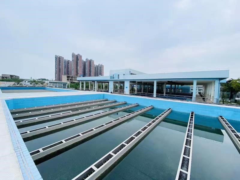 纪南水厂设计供水规模为近期5万m³/d,远期10万m³/d,净水处理工艺为:折板絮凝池→平流沉淀池→V型滤池→清水池。
