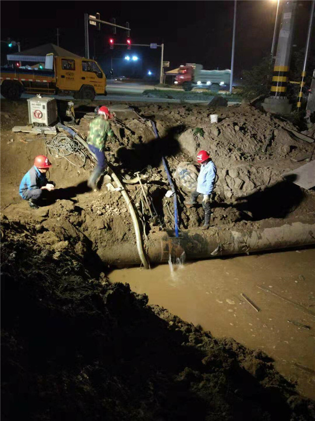 10月31日凌晨1点,位于荆监一级公路与深圳大道交汇处的供水抢修施工现场灯火通明,供水抢修工人已经在DN600供水主管的施工坑道下连续工作了6个小时。