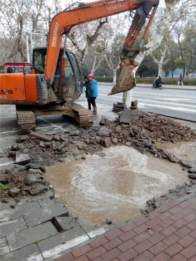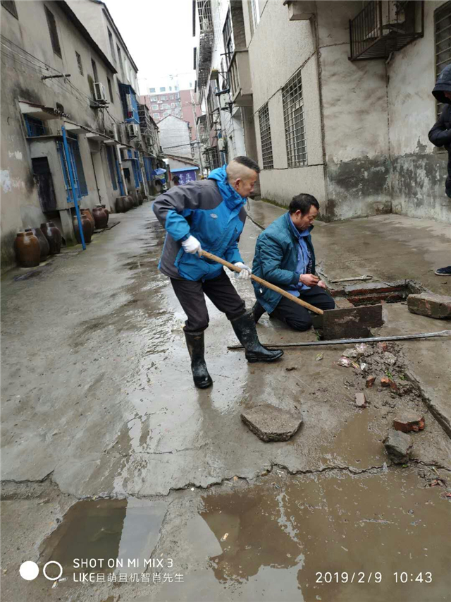 2月6日大年初二晚,景明观路多名用户同时反映水压突然降低,周边一百多个家庭的用水受到影响。接到电话后,值班干部张凌马上带上测漏班、抢修班的几名同志连夜赶往现场进行排查。他们手拿听音杆、挨家按户的敲门走访,勘察每一处下水、供水闸门和消防设施,一直忙到晚上11点,基本确定引发低压的主要原因是一处拖管暗漏导致,并锁定了具体位置。2月7日一大早,抢修班人员带齐设备重返现场,对漏点位置进行开挖,果然一条PE90的主管正在漏水。经过抢修班马不停蹄的维修,下午14:30分,漏点被彻底修复,水压力恢复正常,景明观路周边群众喜笑颜开,纷纷都为水务集团的抢修师傅们竖起了大拇指,赞叹水务集团的员工素质高,效率快!