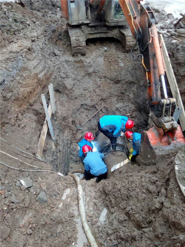 此类险情大家以前也都经历过,按照正常的处置程序需要先要切断该条管线的来水,待破损处修复完成后再开闸通水。但由于这天正值大年三十,常规抢修方案必然会导致长时间、大范围的停水,在这条管线用水的十余万用户的团年饭可能就此“泡汤”。抢修班长洪震当即决定:“协调人员设备,全力带水抢修,缩短停水时间,要让大家吃顿安逸的团年饭”。上午7时,抢修队员们临时关闭了干管阀门,漏点及时得到了控制,9时开启阀门通水,12时漏点加固处理完毕,14时全部完工清场。在大家的全力配合和高效作业下,整个停水时间只有短短不到两个小时,但这是抢修队员们却穿着湿淋淋的衣服,迎着寒风瑟瑟发抖连续工作6个小时的艰辛换来的。