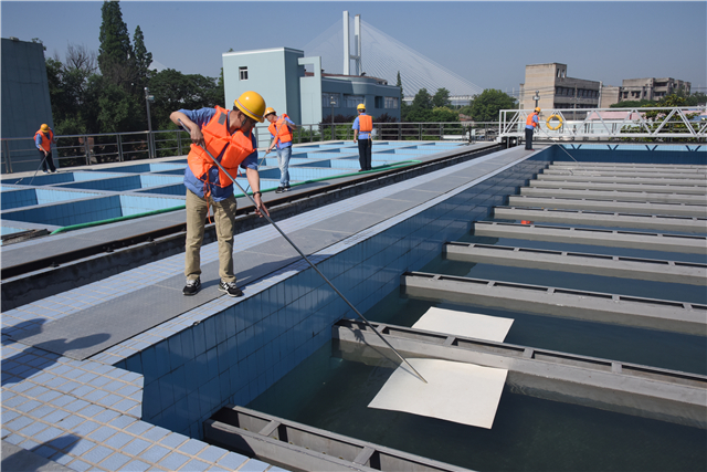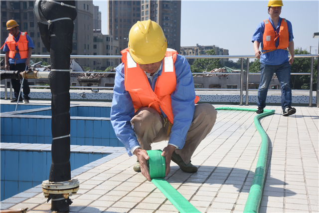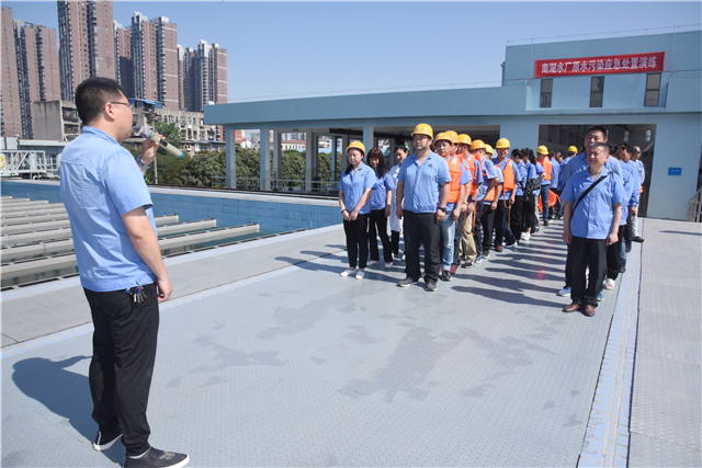 水源污染应急演练于5月23日上午9:30在南湖水厂进行,模拟南湖水厂取水泵船值班员在取水点的江面上发现油性污染物,可能影响供水安全。南湖水厂厂长接到报告后,启动水源污染应急预案,同时向水质检测中心和南湖水厂抢险员发出紧急指令;向信息调度中心报告,关闭所有取水和送水机组,停止生产。