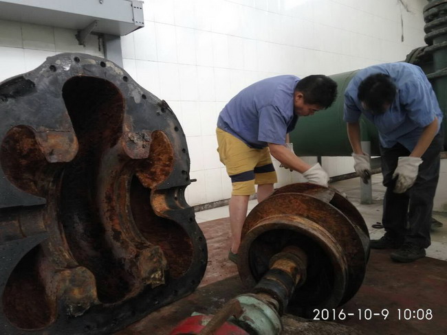 在对设备进行检修中发现,经过今年持续的满负荷取水,每台取水泵都存在各种各样的磨损问题。有的水封环不能密封;有的口环出现严重磨损;还有的叶轮出现严重的气蚀现象。每台水泵的轴承都需要全部更换,取水能力已经严重下降。因此,我厂向公司领导提交了情况报告,公司领导非常重视。立即指示物资部门与我厂联系,购买了相关的物资和配件,我厂立即组织维修人员进行维修。