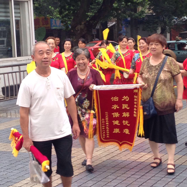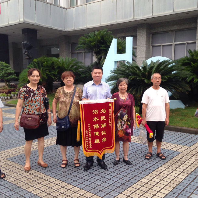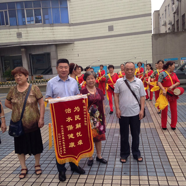 为了表达交通小区全体居民的感激之情,小区的居民代表专程送来锦旗,感谢水务集团“为民解忧难,治水保健康”。