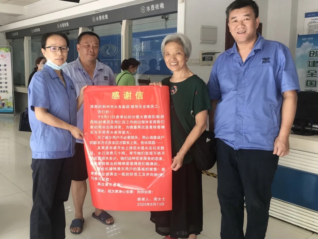 尽管只有短短的一两百字,但是字里行间无不透露着周女士对荆州水务集团供水服务工作的肯定。这一封感谢信不仅道出了荆州水务人与用户之间深深的情感,更是荆州水务人想用户所想,进一步做好供水服务工作的动力。