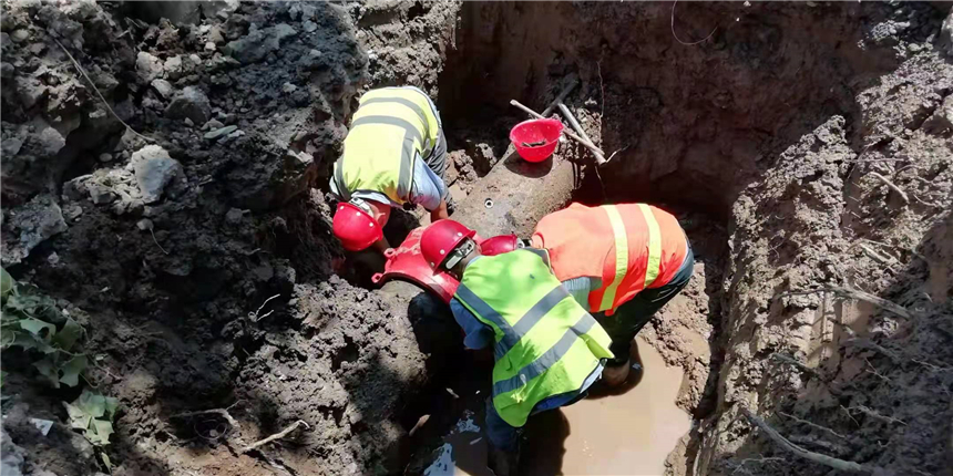 7月25日周二,白天的城区最高温度已达37摄氏度,临近正午时分,骄阳似火,火辣的太阳炙烤着地面,地表温度甚至达到45度以上。管网部接到报修电话反映沙市红光路金典幼儿园门前DN400的球墨供水主管发生管漏,柳林抢修站的抢修队员担心高温天气影响市民生活,放弃中午高温休息时间,紧急赶往红光路金典幼儿园旁进行了开挖抢修两处管漏点,在烈日暴晒下一干就是3个小时,期间只是在阴凉处简单休息一下,喝了点水后又接着干。经过紧张的施工,下午3点完成了抢修任务,恢复了正常供水。由于抢修及时,管漏附近企业和居民生活基本未受到影响。附近居民们还特意打来电话表示感谢。完成这里的抢修后,他们又马不停蹄赶往下一个维修点,7月26日凌晨,为了不影响城市交通,管网部南湖抢修站的抢修队员又连夜奋战10小时,抢修完成了位于沙市金龙路与白云路交汇处的DN600供水主水管暗漏一处,保证了南水水厂出厂水水压稳定和供水安全。也就在这连续的高温天气里,抢修队员们工作繁忙,他们克服困难始终奋战在抢修一线,已经在荆州城区抢处置了多起压低、管漏抢修任务,平均每天处理15起以上管漏事件。