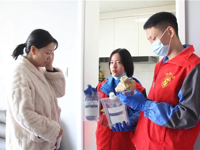 上午,青年志愿者们首先来到了金江宝坻小区的张奶奶家,由于家中有个正在上幼儿园的小孙子,张奶奶十分关心水质是否安全。在了解情况后,志愿者们开始对自来水和家用净水器的直饮水进行取样。首先,用装有硫代硫酸钠的无菌瓶采集微生物水样,然后用常规采样袋采取理化检验项目所用水样。为保证水样不受污染,志愿者们全程佩戴无菌手套。采样结束后,志愿者们询问用户家中的用水情况,并解答用水疑问。