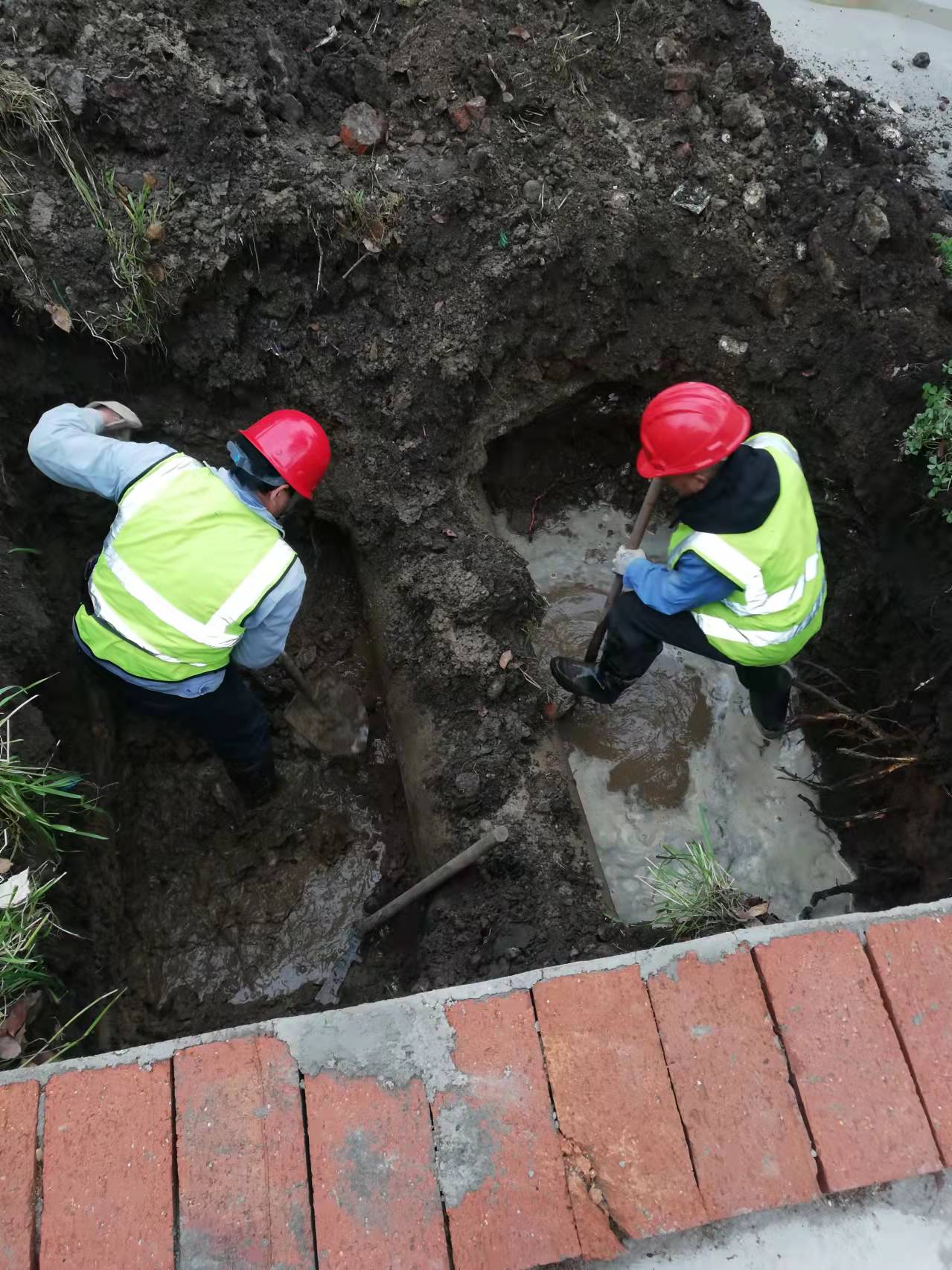 在抢修现场,抢修人员认真做好抢修前的准备工作,连接好氧气瓶、接电装置迅速展开抢修作业,轮流到施工坑下方进行切割、绑卡子、拧螺栓,每一项施工项目规范到位、一丝不苟。现场风雨如注,雨水伴随着阵阵大风直往脖子里钻,大家都顾不上擦一下,个个不辞辛苦、冒雨奋战,专注抢修。此次抢修在五个小时内及时完成抢修任务,顺利修复漏点。随后,抢修人员开展管网冲洗排放工作,确保水质清洁安全。