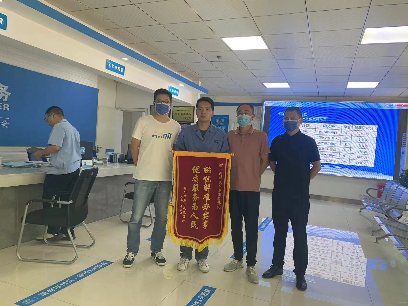 荆州水务集团抢修队员们为了病人能正常透析,放弃休息时间连夜抢修,让院领导和患者都感动万分,自发组织起来为荆州水务集团送上锦旗以表感谢。