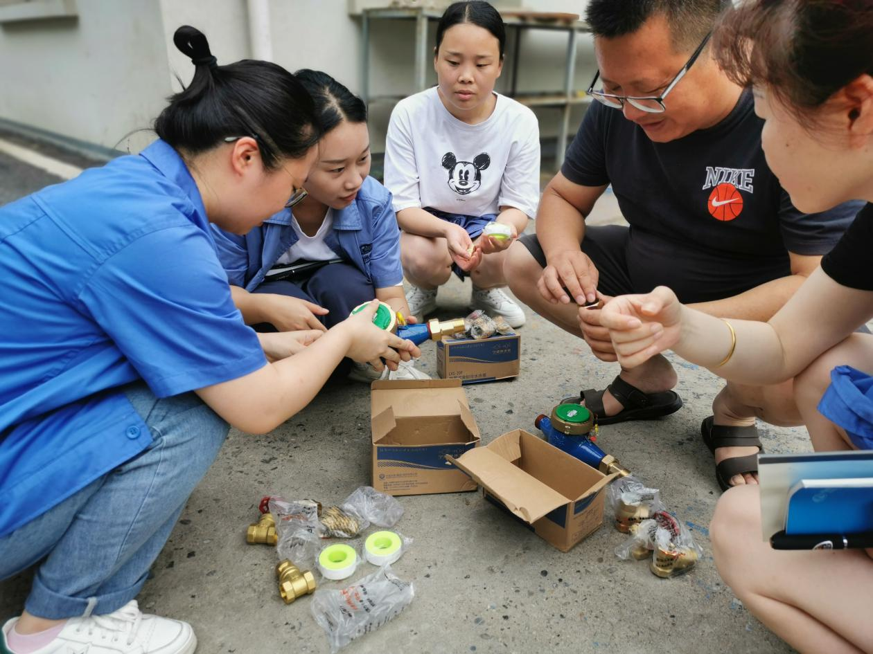 在实际操作中,大家也发现,如果是我们自己在安装的过程中没有注意细节,也会造成水表安装成功后,用户水压小或者水表组件漏水的问题。如:在缠绕生料带的时候,生料带缠绕不够或将管道口部分遮挡,未进行处理;或加密阀在开启的过程中,未开启完全;或水表活接头在安装的过程中忘记了垫圈等等。类似的问题也提醒了我们施工人员在现场实际安装过程中需要格外注意。