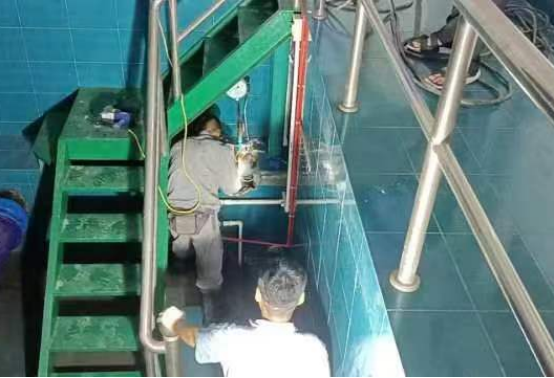 8月10日下午,鼎鑫源工程公司接到海润公司求助,滩桥水厂送水泵房内存在暗漏点,望给予技术支持。