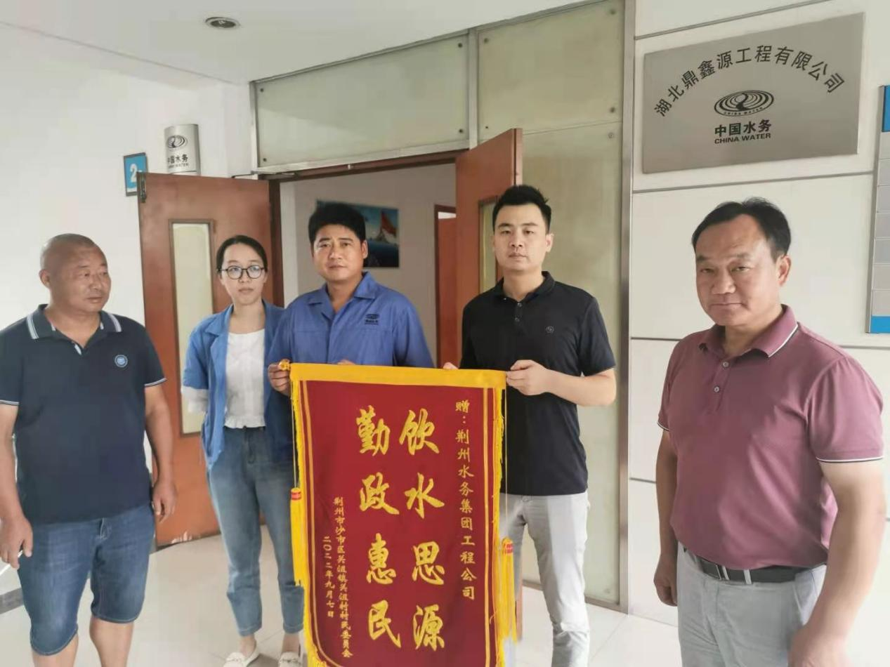2022年9月7日下午,关沮镇关沮村村民委员会的工作人员来到了湖北鼎鑫源工程有限公司,将一面写着“饮水思源勤政为民”的烫金锦旗送到了施工员的手中,对其尽职尽责、高效周到的服务表示高度赞扬和诚挚感谢。