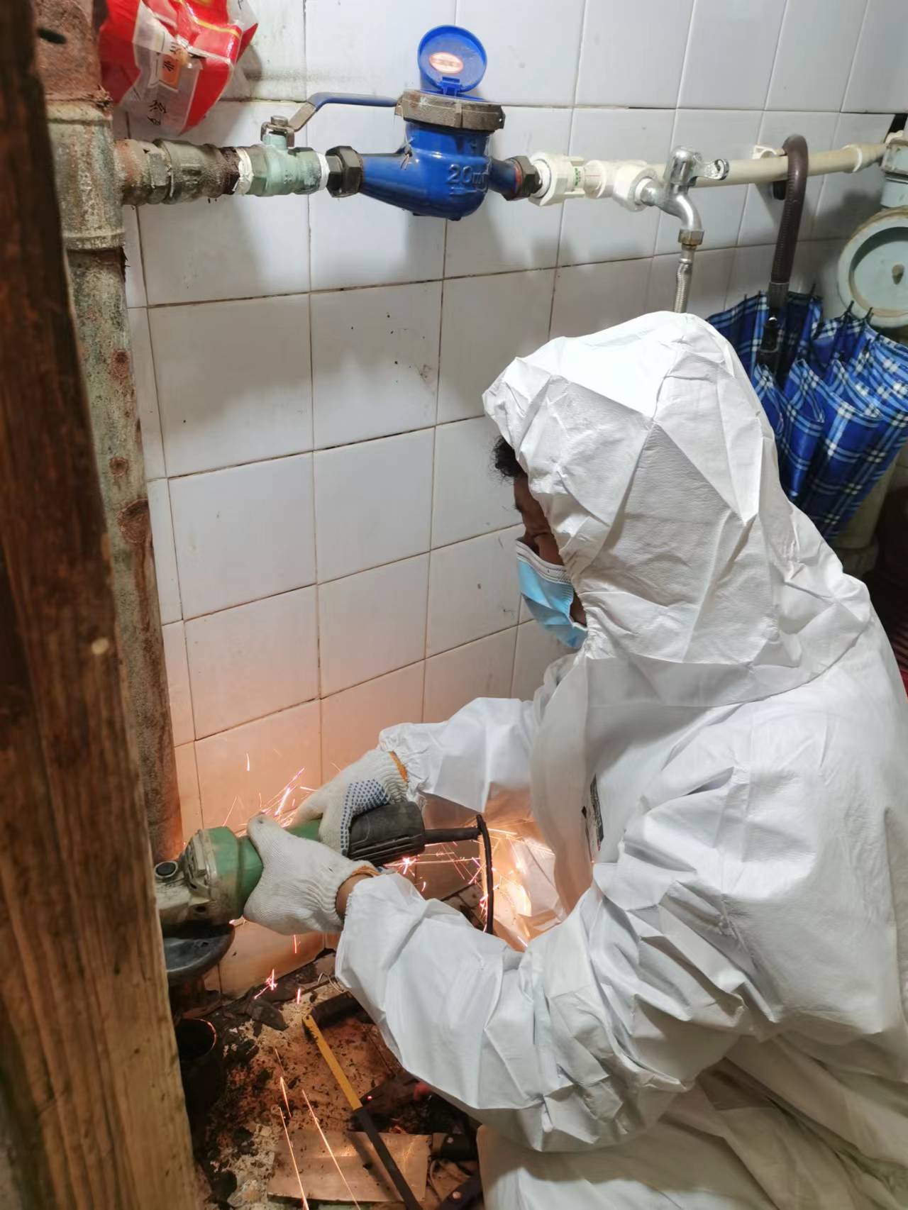 10月11日,位于北湖小区莲村的用户求助,反映楼栋无水。维修人员赶赴现场后,发现是楼栋表后管道老旧破裂,造成居民无水可用。虽然这不属于公司的管辖范围,但为保用户正常用水,维修员们立刻准备材料维修,以最快的速度恢复了供水。近几天,这样的用水求助有多起,维修人员马不停蹄地各处辗转,克服道路管控,入户核检等诸多困难,及时解决市民的用水难题。