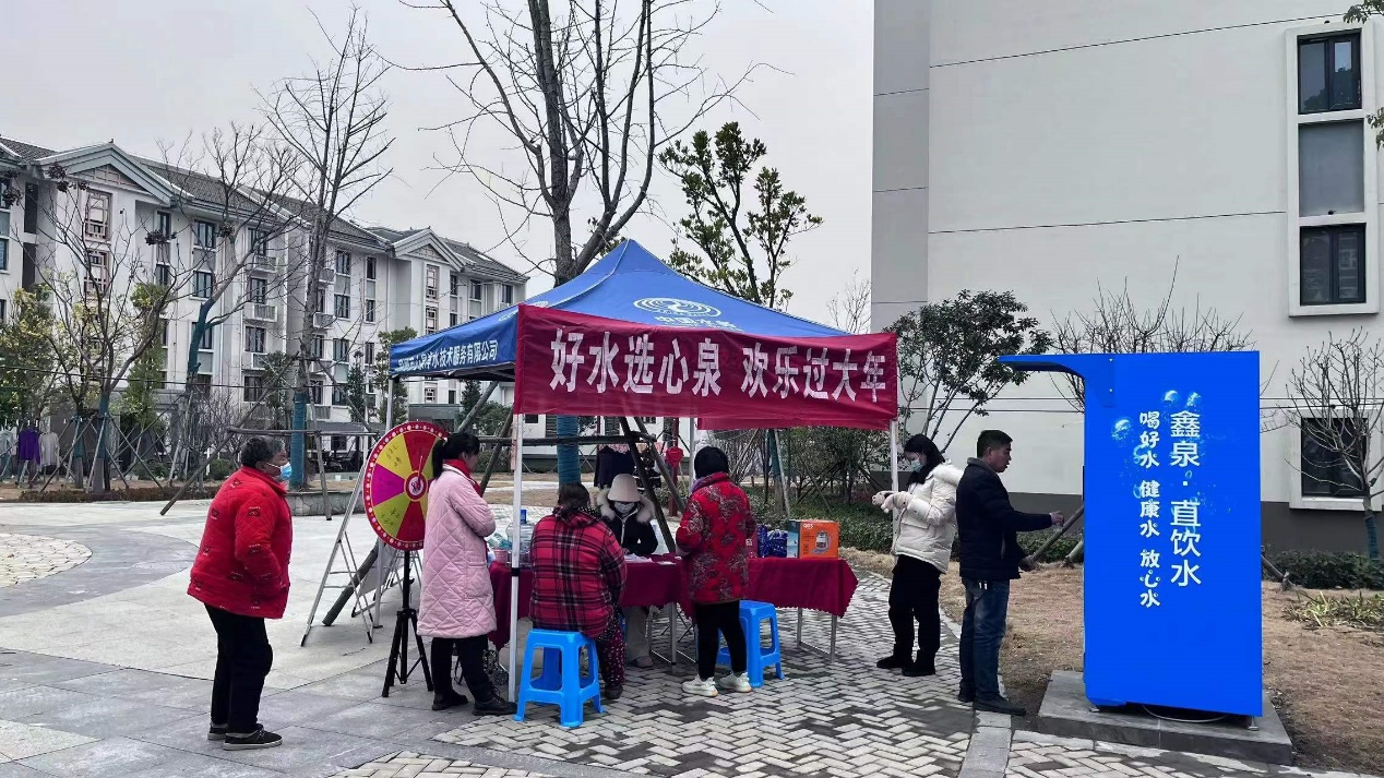 春节临近,为提升枣林苑小区居民饮用水品质,喝上健康好水,经过和枣林苑社区的沟通,近日在该社区投放了惠民水站,荆州水务心泉公司的同志们带着“直饮水”进小区,有序推进便民、利民、惠民服务对直饮水进行宣传。同时,在新春佳节来临之际为他们送去节日的问候和深深的祝福。