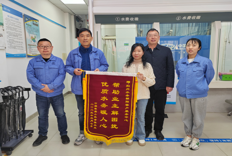 收到锦旗后,文经理表示:“牢记使命,不忘初心,无论我们走多远,都不能忘记来时的路。”作为荆州水务人,全心全意为客户提供优质供水服务永远是我们的初衷追求和使命担当,今天的锦旗褒奖只是一个新起点的开始,朝阳客服中心全体员工要在锦旗的鞭策下,鼓舞下,用热情优质,规范高效的服务让客户始终感到满意,才是我们永不停歇的努力方向。”