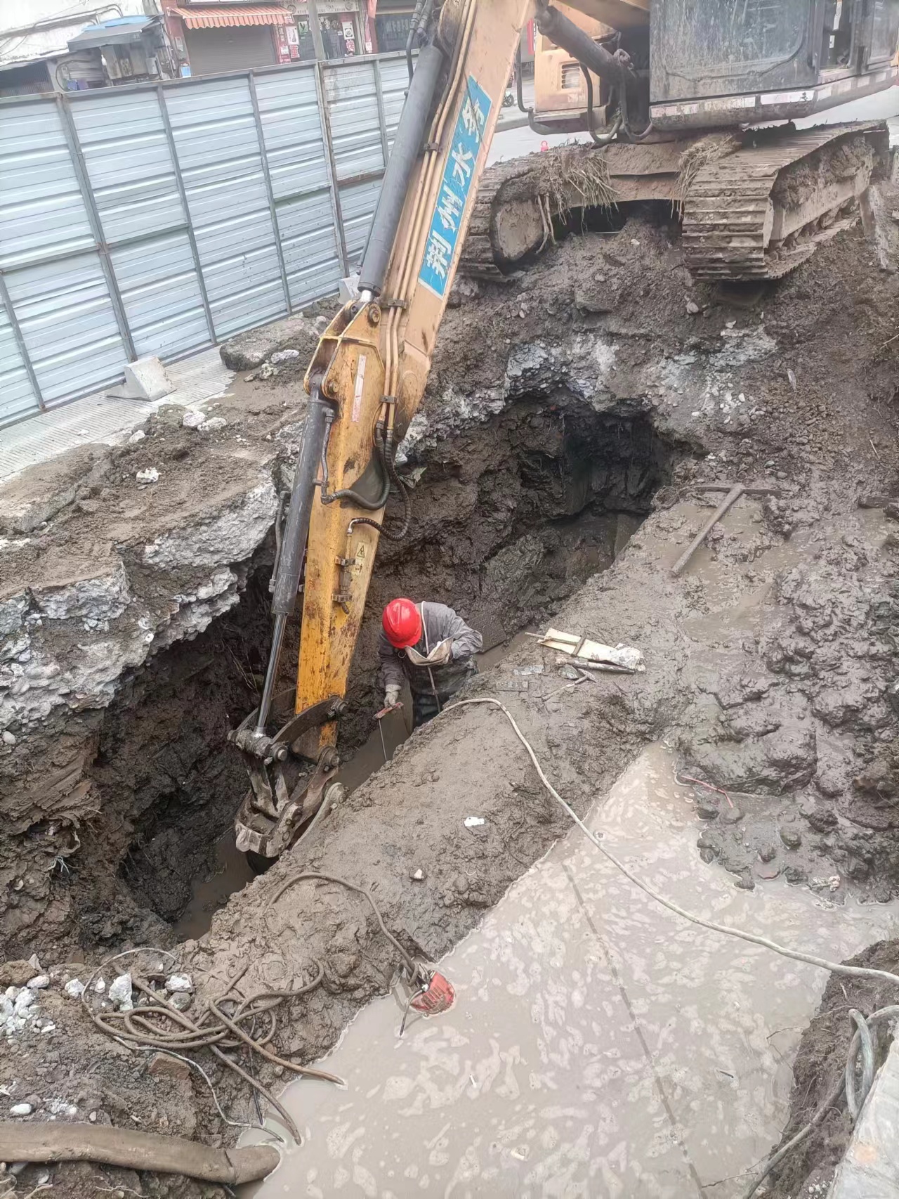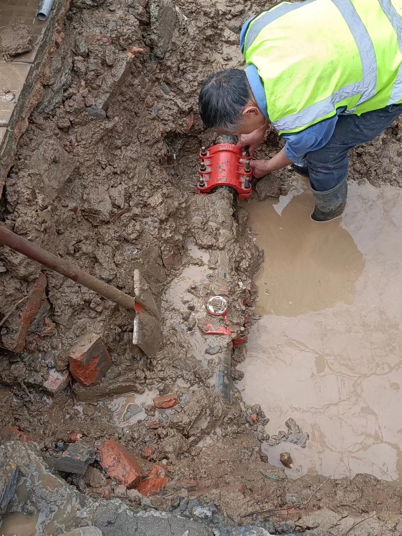 3月27日上午8点,在大型维修车辆、设备人员充分准备就绪后,维修施工正式开始。根据施工方案,首先要移除渗漏管道上方的绿化带,接着大型挖机进场破路施工,在找到漏点以后,管网抢修队员员娴熟的拿上施工装备下到满是污水的施工点有条不紊的开始施工流程,从上午8点到下午4点,经过近8小时的连续施工,这个困扰大家多日的“难题”终于得以解决。经过测压观察,压力一切正常。并在晚高峰之前,燎原路路这一路段恢复了供水,本次维修施工也得以顺利完成。