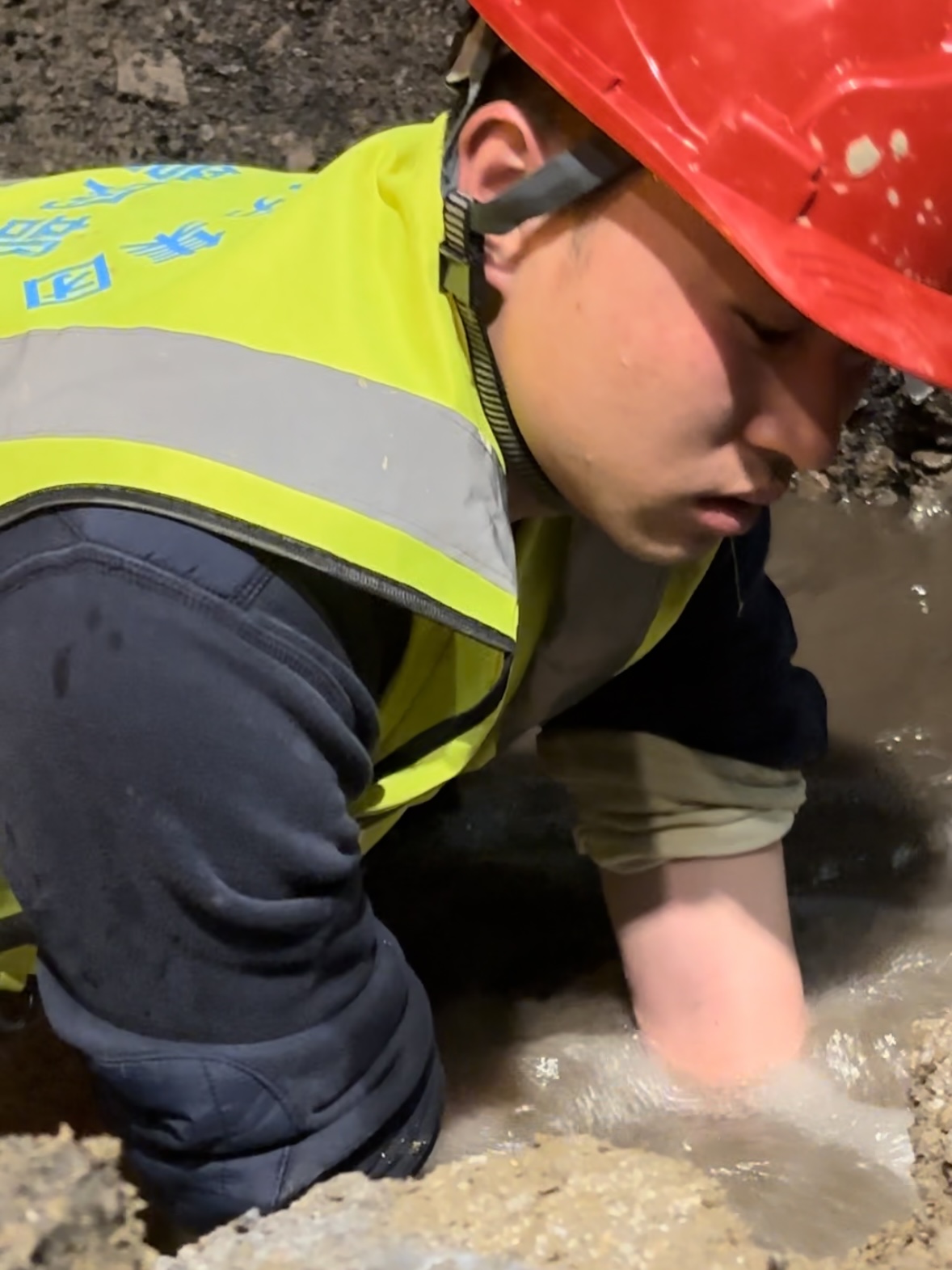 抢修员们在泥坑中连续作战6小时后,抢修任务顺利完成,此刻的抢修员们彻夜未眠,汗水夹杂着泥水将浑身上下都湿透,但他们严肃的脸上绽出笑容:“我们干得快一点,用户用水就能早一点。”