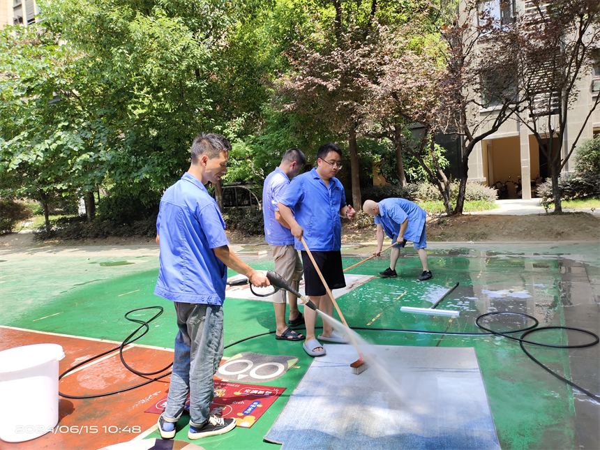 活动前夕,心泉公司与小区物业进行沟通对接,并将人员进行合理地分配,以保证活动顺利开展。直饮水会员日活动包括主动征求收集业主在用水方面的意见和建议、为业主解疑答惑、自来水及直饮水上门服务、免费清洗或更换水桶、免费清洗地毯地垫等,活动在小区篮球场举行。活动当天,十多位心泉的工作人员身着整齐的蓝色工装,用饱满的热情接待每一位前来的用户。在炎炎烈日下,有的工作人员一边为用户清洗水桶,一边告知用户清洗水桶、水壶的小妙招;有的工作人员为业主们清洗地毯、地垫等,尽管汗水浸湿了衣服、水花浸湿了鞋袜,他们也都毫不在乎;还有的工作人员认真记录用户诉求,针对用户提出的缴费、扣费等问题,都耐心细致地讲解,引导用户使用“银龙直饮水”小程序和指尖水务APP网上营业厅等便民方式进行直饮水和自来水的查询、缴费;针对用户提出的水质水压等用水问题,心泉的工作人员更是立即上门查看并现场解决……