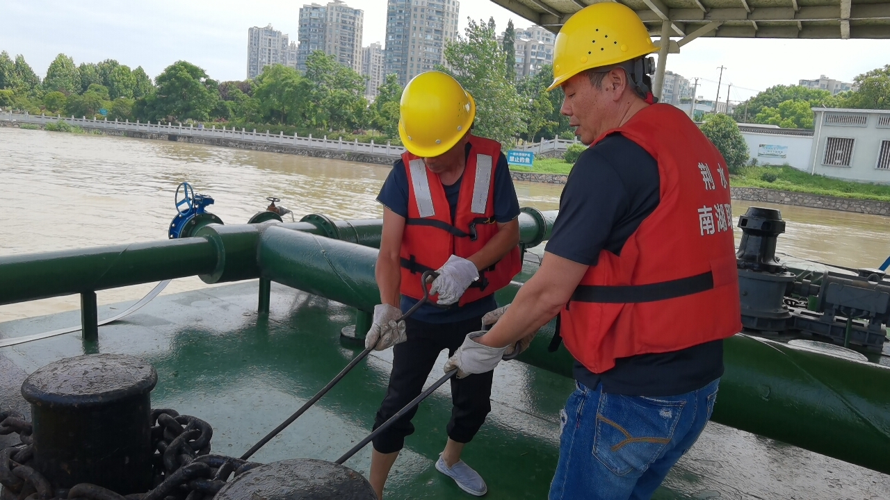 在取水泵船,值守人员身穿救生衣、腰系安全绳,拉着沉甸甸的锚链,根据长江水位调节泵船锚链长度。为了确保安全,取水泵船值守人员每次作业都必须全副武装地穿上不透气的“救身衣”,一趟作业下来,衣服都能拧出水。这样的工作流程,值守员们每天进行多次。对于这实实在在的“辛苦活”,值守员们坚定地表示:“供水安全是自己的职责与使命,能为千家万户守护‘清凉一夏’,苦点累点也值得。”