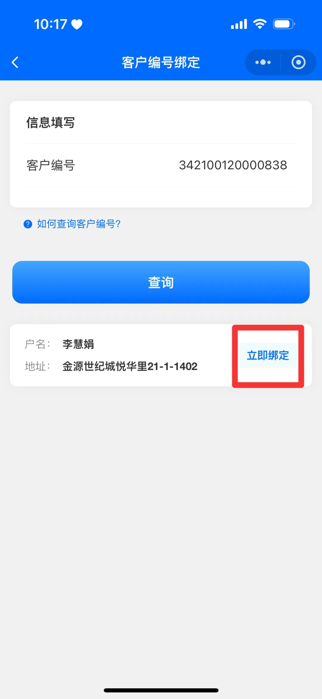 三、已查询获取到客户编号的用户,如何在手机上进行户表绑定?
