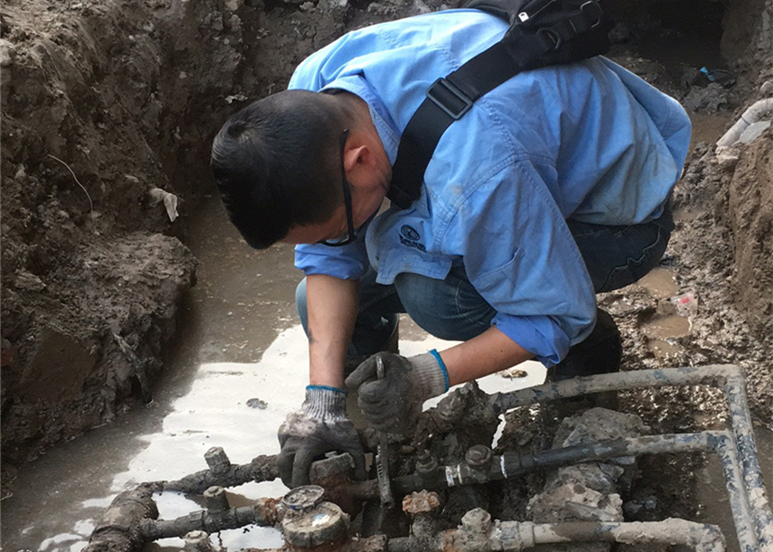 朝九晚五这个概念不会存在于王纲的世界里,作为维修员,他早已习惯了早出晚归、披星戴月的工作方式,但他从不因时间的早晚或是环境的恶劣而对工作打折扣。早上七点,维修车从公司出发,今天要去的地方是和悦家园小区,该小区正在进行老旧小区改造工作,施工方不小心挖断了我们的给水管道,暴露在外的给水管道时刻危及着水质安全。赶到现场后,王纲和同事们傻了眼,由于该小区正在进行的是下水管道改造,污水横流,生活垃圾遍地,就连需要关闭的闸门都泡在了粪水里。但水流不等人,就在大家都对这个环境感到为难时,王纲迅速从维修包里拿出了套鞋和手套,率先踏进污水中,弯腰在水中摸索着,不一会儿就熟练地关闭了闸门,维修工作也顺势进行。看着满身被污水和汗水浸渍的王纲,周围围观的居民们纷纷竖起大拇指:“水务集团的人真是不怕苦,太感谢你们了!”