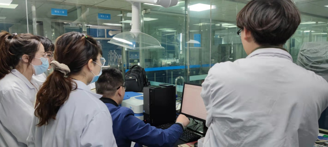 今天,二楼紫外分光光度室站满了一群年轻的化验员。原来是今天到了一台新的紫外分光光度计,大家趁着安装工程师来安装仪器的机会,都跑过来学习,向工程师请教仪器的使用方法以及配套的软件使用方法,大家认真的记着笔记,也在工程师的指导下亲自上手操作。新的紫外分光光度计相较于原先十年前的那台,功能更齐全、精度更高、操作更便捷、智能化程度更高,这将大大优化二楼理化检测项目的检测能力,提高二楼的实验效率。