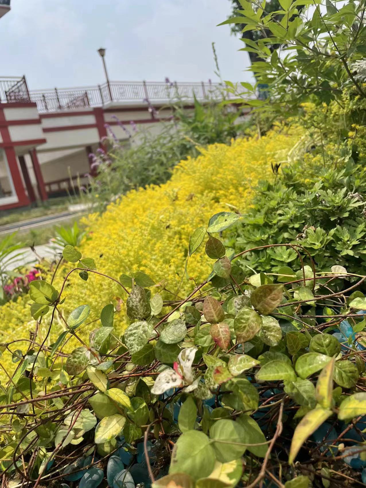 这几天当你走在纪南水厂时,目光是否被绿地里一种低矮的地被植物所吸引?一年中,夏季是她最漂亮的时候,然而,那“一朵朵”灿若云霞的却不是她的花。新叶粉嫩,如同盛开的花朵,花叶斑驳。似调色盘般多彩,随四季变化,展现独特的美丽。她,便是花叶络石。