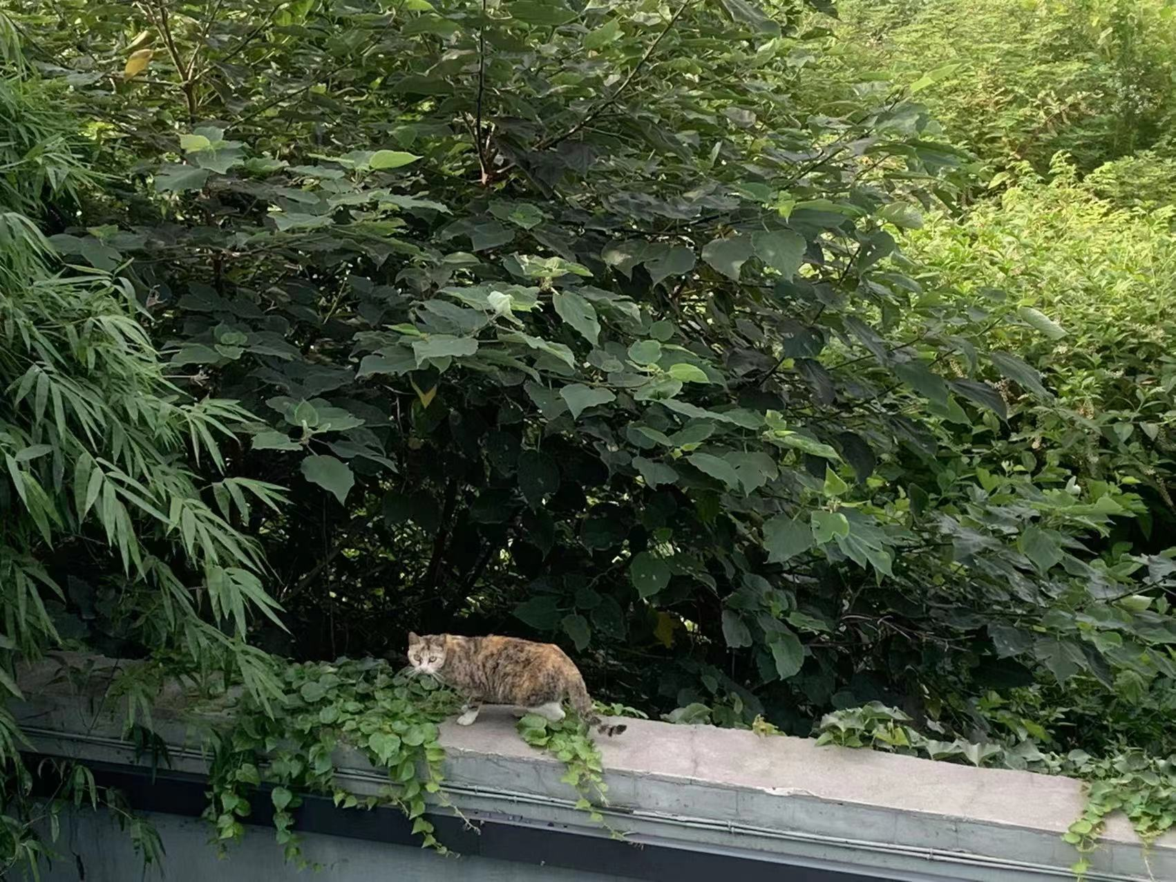 夏天的美中不足大概是太热了。空中没有一片云,头顶没有一点风,一轮烈日晒的所有的树木都没精打采地懒洋洋地站在那里。工作间隙,我靠着窗台拍到这只猫,正慢悠悠地在围墙上散步,我冲它打了个招呼,甚至懒得发生声响,接着向前走去再也没有回头。