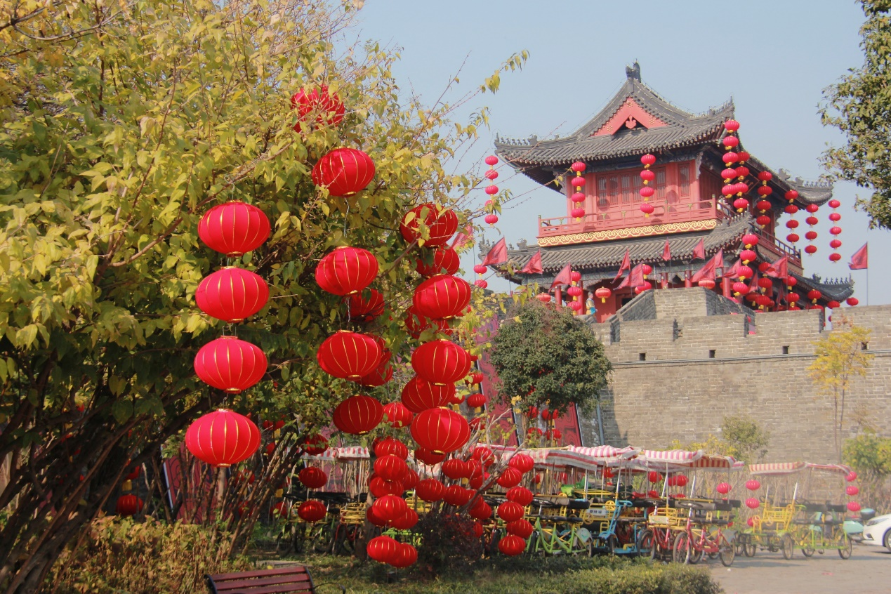 近日,荆州东门宾阳楼、金风广场、护城河两旁大红灯笼和中国结高高挂起,节日的气氛衬托得更加浓郁,因此吸引了不少市民前去观赏,今天我也去凑了凑热闹。