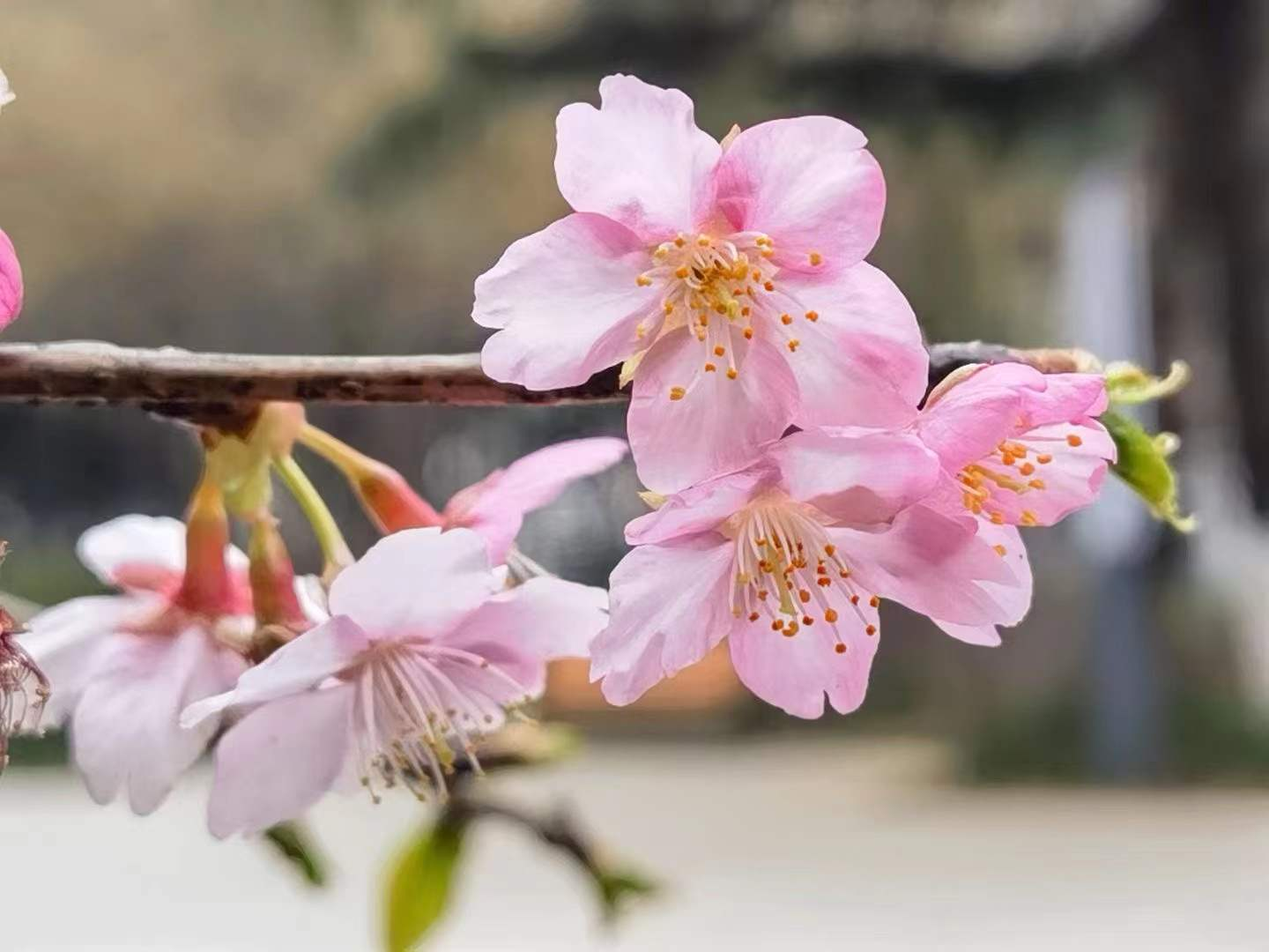 紫荆开得没心没肺,春风不过吹了两下,它们就跟商量好了似的,齐刷刷地全冒出来。谁说红花必须绿叶配,紫荆花每根枝条上,只有花没有叶,也依然璀璨夺目。花如其名,紫色的花儿一小簇一小簇地开着,手挽手,肩并肩,密密匝匝,盛况空前。还有垂丝海棠开得烂漫,宋代诗人杨万里更是把垂丝海棠夸得力压群芳,“垂丝别得一风光,谁道全输蜀海棠”。垂丝海棠,我觉得更妙得在于它的“垂丝”,春风习习,柔软下垂的红色花朵如微醺的少妇,玉饥泛红,娇弱乏力,顿生怜爱之心。