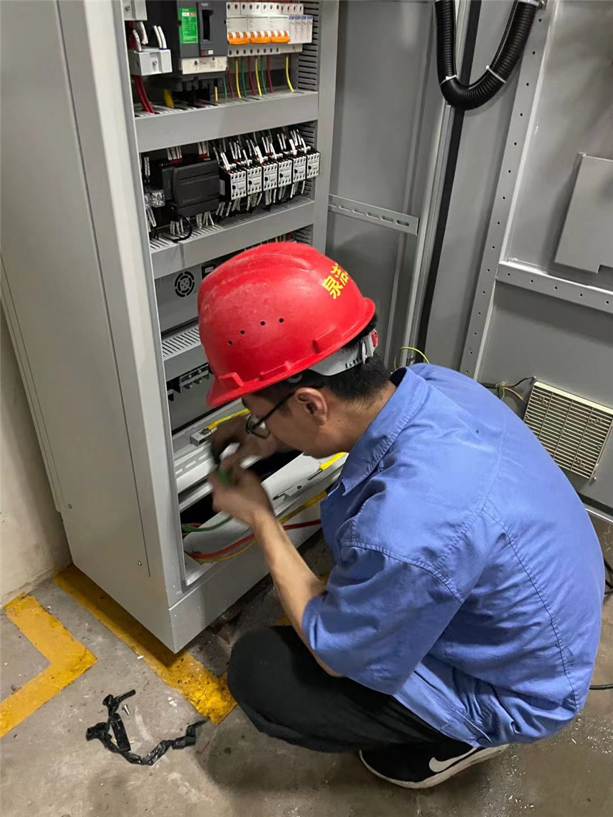 考虑到该酒店的经营性质,在凌晨12点前用水需求量大,如果停水会造成诸多不便。又因该酒店二次供水加压设备老化,故障不断,产品急需更新换代,为此我们泉洁公司为该酒店设计了一套符合它水泵机组工作性能的智能控制系统。在当天晚上11点,我们工程技术人员们克服白天忙碌工作的劳累,加班加点搬运控制柜到该酒店,更换了它的老旧线路,重新走线,并完成设备的调试工作。接下来等待水箱排水再进行水箱清洗消毒工作,在这过程中,泉洁的工程技术人员们一刻不曾离开,一直坚守在工作岗位,确保了清洗人员安全,水质安全和进水安全。直到水箱进水完成后,开始检查浮球是否工作,防止漏水事件发生;最后对新设备进行运行检查,保证能够正常供水工作后,他们才放心地离开。出了地下室,才发现天已经亮了,不管工作条件多艰苦,他们都会义无反顾地往前顶,这可能就是作为泉洁人职责所在。