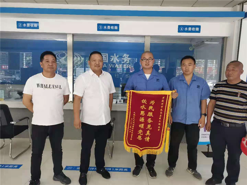 金字相间的“锦旗”既是肯定,更是鞭策。在今后的工作中鼎鑫源工程公司将再接再厉,深化服务措施,提高服务意识,提升服务质量,继续发扬“上善若水·情润万家”的品牌精神,为市民提供安全优质的供水服务。