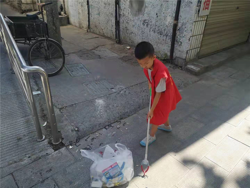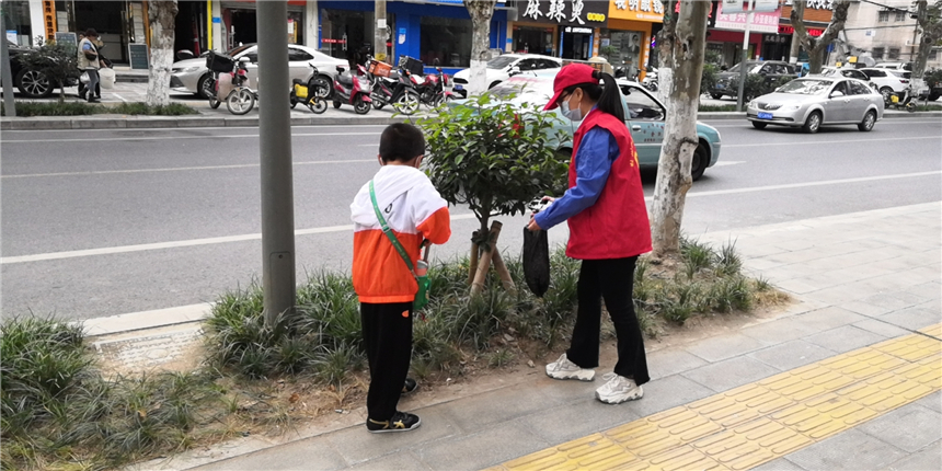 志愿者们带着孩子一边清理责任路段环境卫生,一面引导孩子们向居民宣传创文和环保知识,希望大家要树立主人翁精神,共同爱护环境,保护环境。儿童是向阳的花朵,他们身上寄托着祖国美好的明天,让花朵儿绽放在志愿服务的路上,为荆州市创建全国文明城市,建设真正美好生活,播撒文明的种子,培育向党童心。