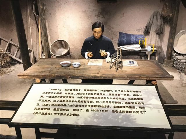 入夜,他点亮一盏昏黄的油灯,着手翻译《共产党宣言》。二月正值隆冬,阵阵寒流不断袭入“书屋”,冻得人手脚发麻。陈望道就请母亲灌了个“汤婆子”。恩格斯曾说过:“翻译《共产党宣言》是异常困难的。”确实如此,陈望道当时既缺乏必要的工具书,又少有参考资料,其艰难程度更是可想而知。