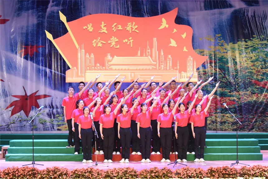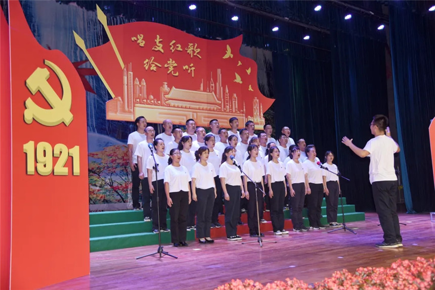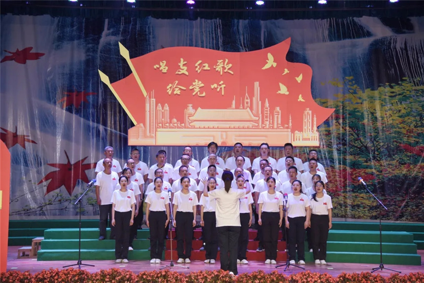 伴随着《我的祖国》优美的旋律,红歌汇演正式开始。来自机关党支部、产业党支部、制水党支部、供水党支部和荆水青年合唱团五支队伍深情演唱了《我和我的祖国》、《团结就是力量》、《黄河大合唱》、《在灿烂的阳光下》等红色经典歌曲,一时间歌声与激情齐飞,表演与梦想交汇。参演人员中有一线职工,也有党员干部,在全体参演人员的演绎下,荆水人唱出了积极向上的精神面貌,唱出了热爱祖国、热爱党的时代强音。