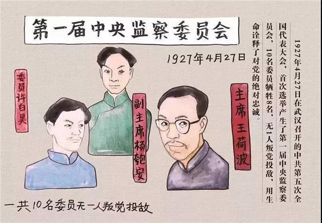 1927年4月27日在武汉召开的中共第五次全国代表大会,首次选举产生了第一届中央监察委员会,10名委员牺牲8名,无1人叛党投敌,用生命诠释了对党的绝对忠诚。