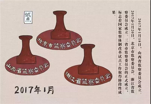 2017年1月18日,山西省监察委员会成立。2017年1月20日,北京市监察委员会、浙江省监察委员会成立。三省市监察委员会的正式成立,标志着国家监察体制改革试点工作取得阶段性成果。