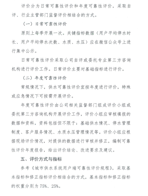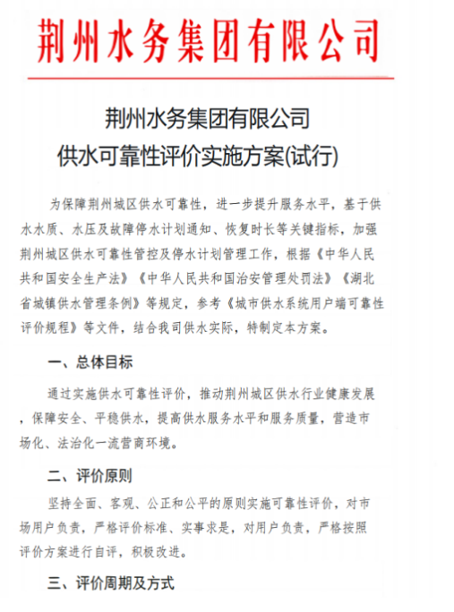 荆州水务集团有限公司供水可靠性评价实施方案(试行)